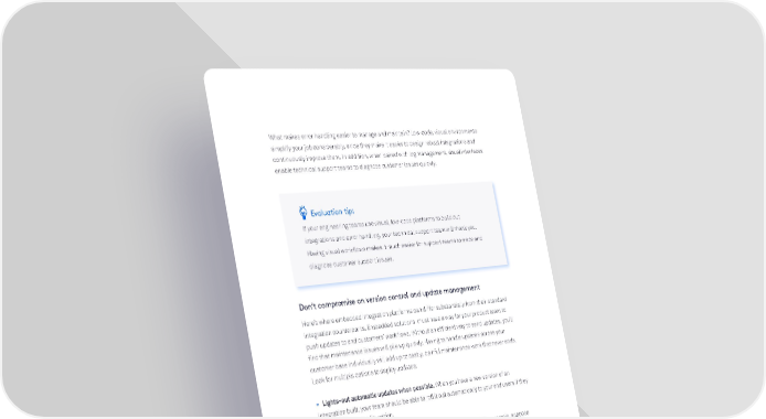 What makes error handling easier to manage and maintain? Low-code, visual environments simplify your job considerably, since they make it easier to design robust integrations and continuously improve them. In addition, when paired with log management, visual interfaces enable technical support teams to diagnose customer issues quickly. Evaluation tip: If your engineering teams use visual, low-code platforms to build out integrations and error handling, your technical support team will thank you. Having visual workflows makes it much easier for support teams to trace and diagnose customer support issues. Don’t compromise on version control and update management Here’s where embedded integration platforms can differ substantially from their standard integration counterparts. Embedded solutions must have a way for your product team to push updates to end customers’ workflows. Without an efficient way to send updates, you’ll find that maintenance issues will pile up quickly. Having to handle updates across your customer base individually will add up to costly, painful maintenance work that never ends. Look for multiple options to deploy updates: - Lights-out automatic updates when possible. When you have a new version of an integration built, your team should be able to roll it out automatically to your end users if they require no extra configuration. - Easily manage updates when new user information is required. For example, suppose your team updates an integration to require new information, such as a new parameter or an updated authentication. Your embedded integration platform should make it simple to prompt the user to supply the required information to complete the upgrade. Ensure complete lifecycle management, testing, and sandbox Whether you’re working on a product-led integration or services-led integration project, solution management is critical. After all, you need to fully build, iterate, and test your solutions in a development environment (such as using test/sandbox accounts and test data) before pushing them to a production environment. 18