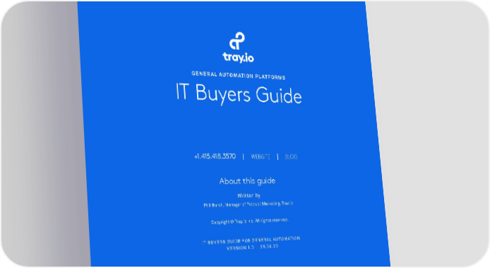 GENERAL AUTOMATION PLATFORMS IT Buyers Guide +1.415.418.3570 | website | blog About this guide Written by Phil Burch, Manager of Product Marketing, Tray.io Copyright © Tray.io Inc. All rights reserved. IT BUYERS GUIDE FOR GENERAL AUTOMATION VERSION 1.0 | 25.09.20